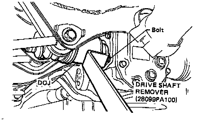 - When removing DOJ from rear differential using remover, fit remover to the bolt as shown so as not to damage side bearing retainer.