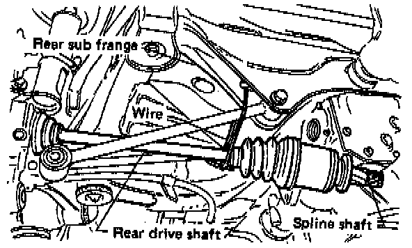 9. Secure rear drive shaft to rear sub frame using wire.