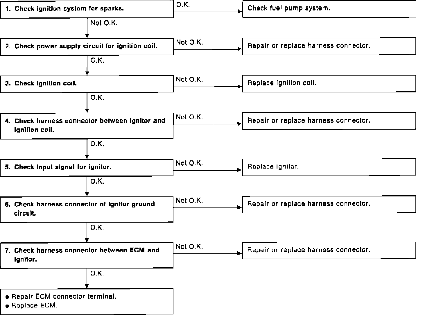 CHECK HARNESS CONNECTOR BETWEEN ECM AND IGNITER