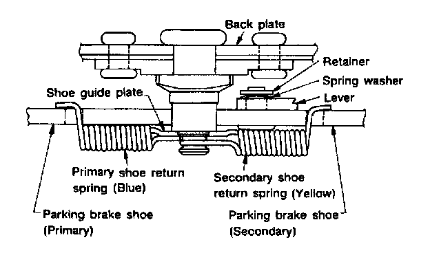CAUTION: After replacing parking brake lining, be sure to drive vehicle for "break-in" purposes.