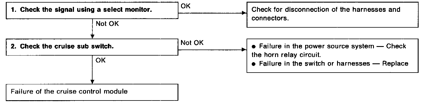 3. Check for harness short circuit between sub switch and cruise control module.