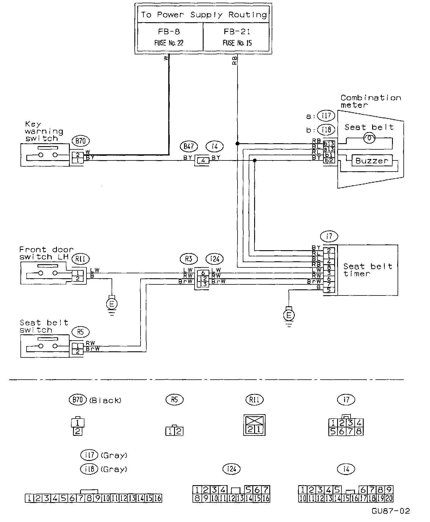 Seat Belt Warning And Key Warning System Circuit: