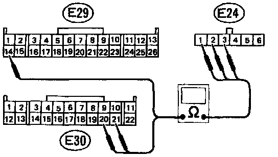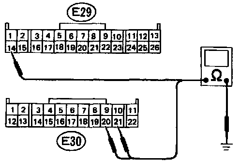 c. Measure resistance of harness connector between ECM and body to make sure that circuit does not short.