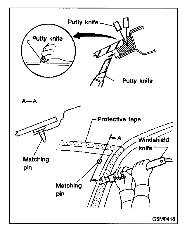 CAUTION: When making through-hole into adhesive layer and cutting the adhesive, be careful not to damage interior and exterior parts.