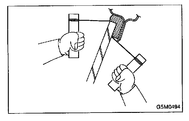 4. Cut adhesive layer with the wire by pulling it back and forth.