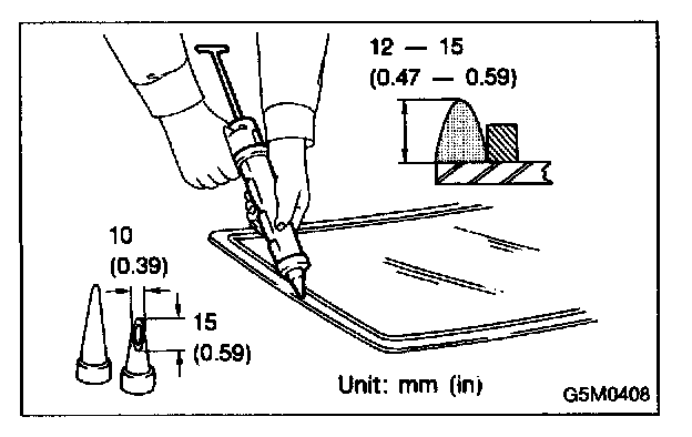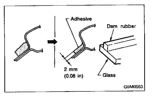 2. Finishing adhesion surface on body side Using a cutter knife etc., cut layer of adhesive sticking firmly to body, and finish it to a smooth surface of about 2 mm (0.08 in) in thickness.