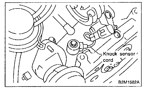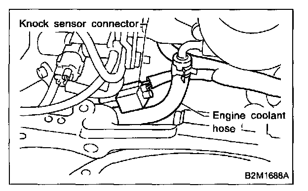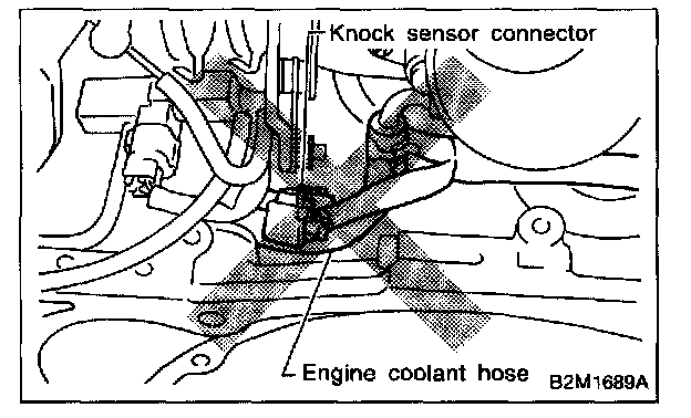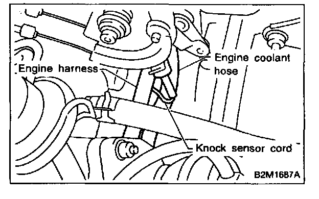 NOTE: The knock sensor cord must pass between the engine harness and engine coolant hose.