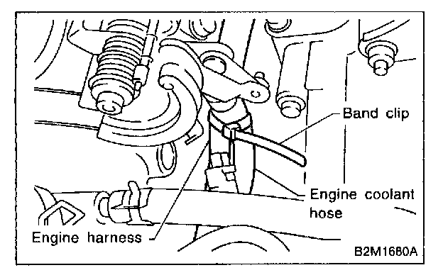 3. Fasten engine harness to engine coolant hose with band clip.