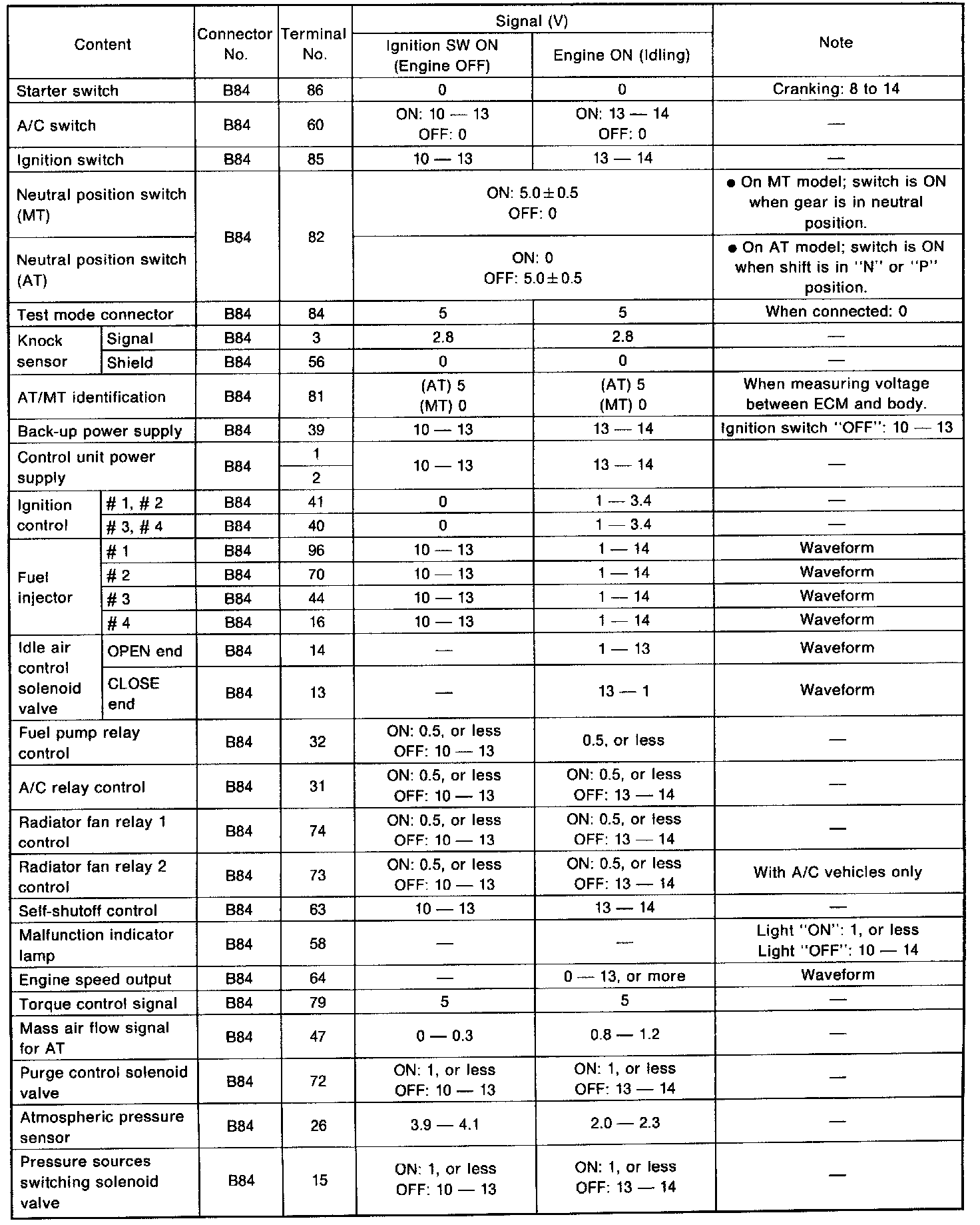 ENGINE CONTROL MODULE (ECM) I/0 SIGNAL