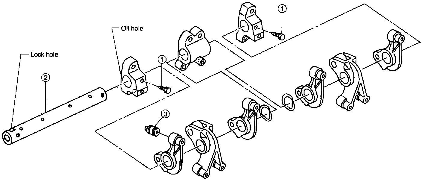 1) Remove bolts which secure rocker shaft.