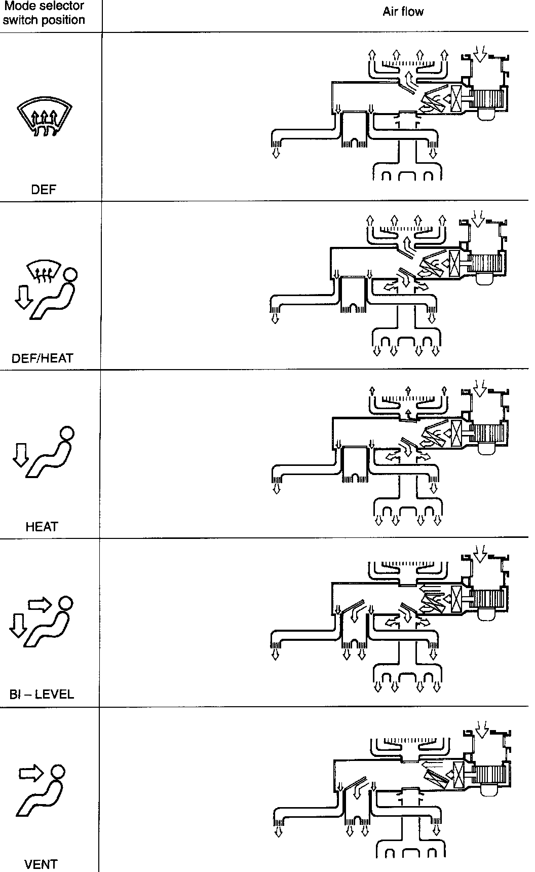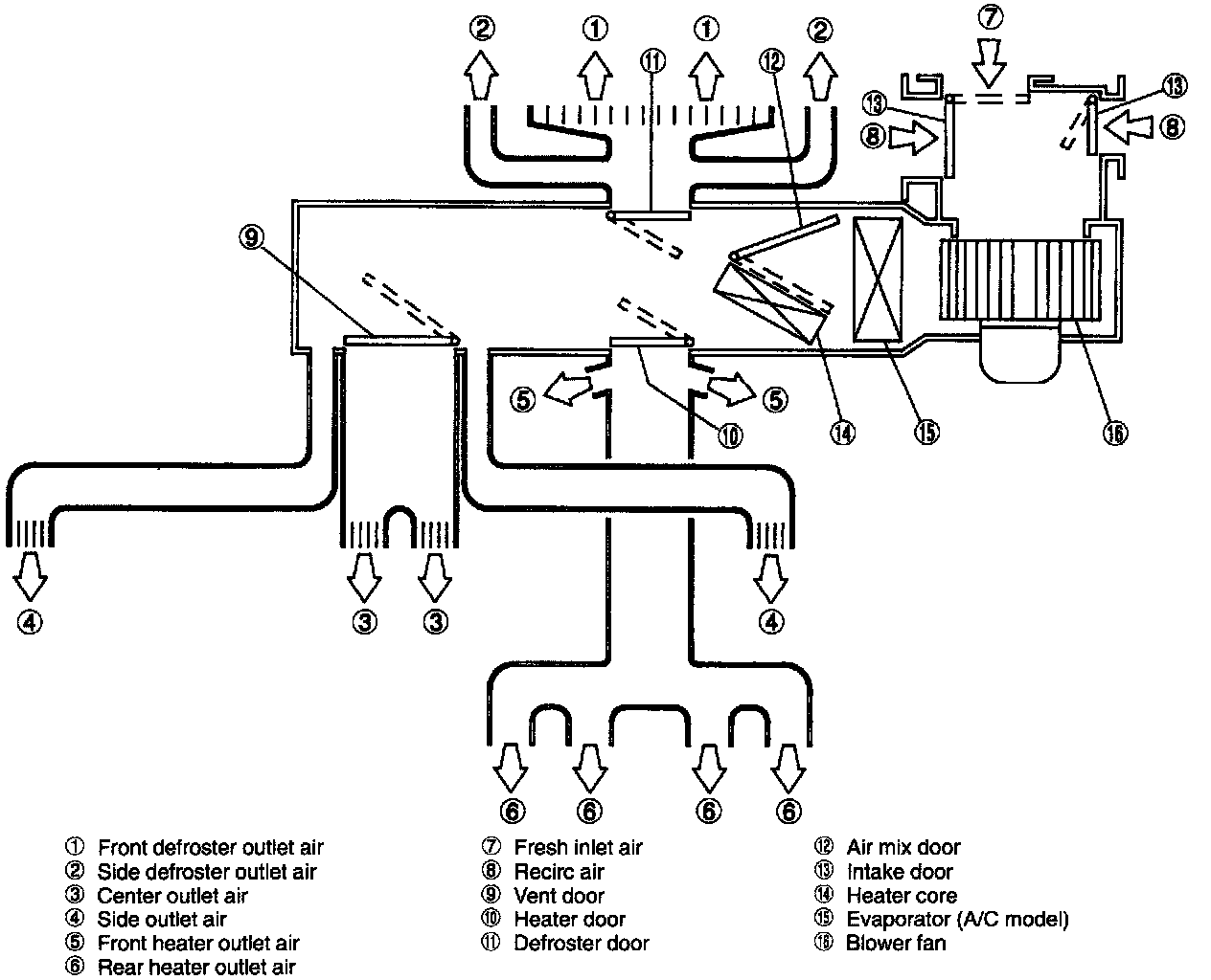All models are equipped with the front side window defroster and some models are further equipped with the rear heater duct.