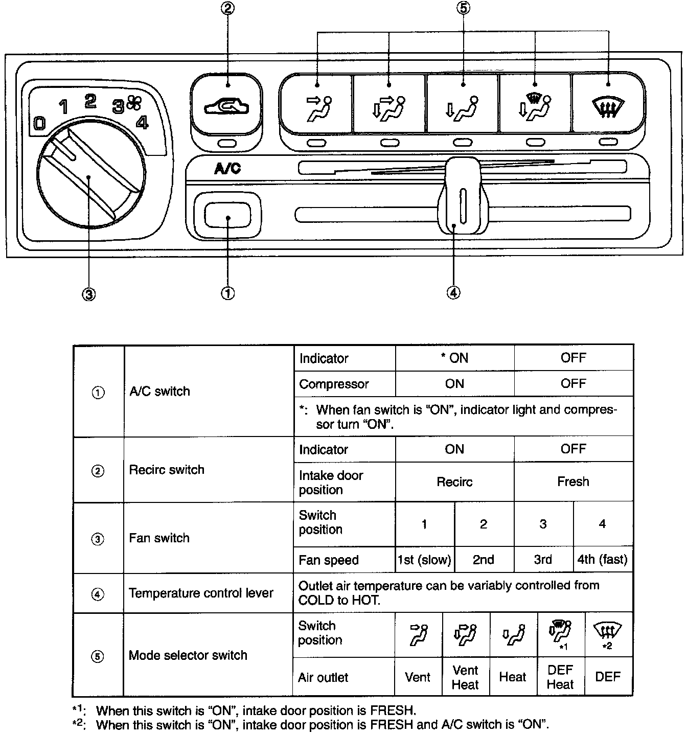 Fresh outside air is introduced into the compartment through the center and side ventilator grilles when the blower fan is operated.