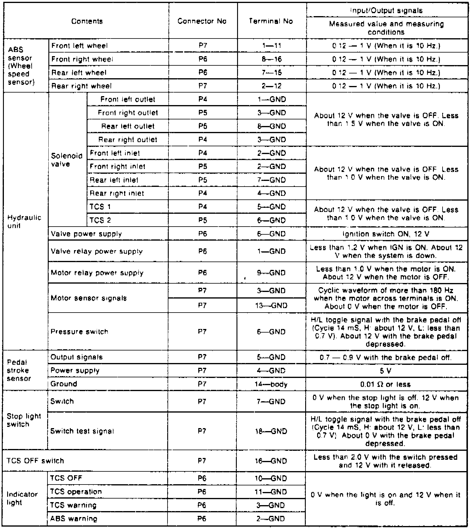 Fig. 11 ABS/TCS Control Module Pin Voltage Specifications (Part 1 Of 2):