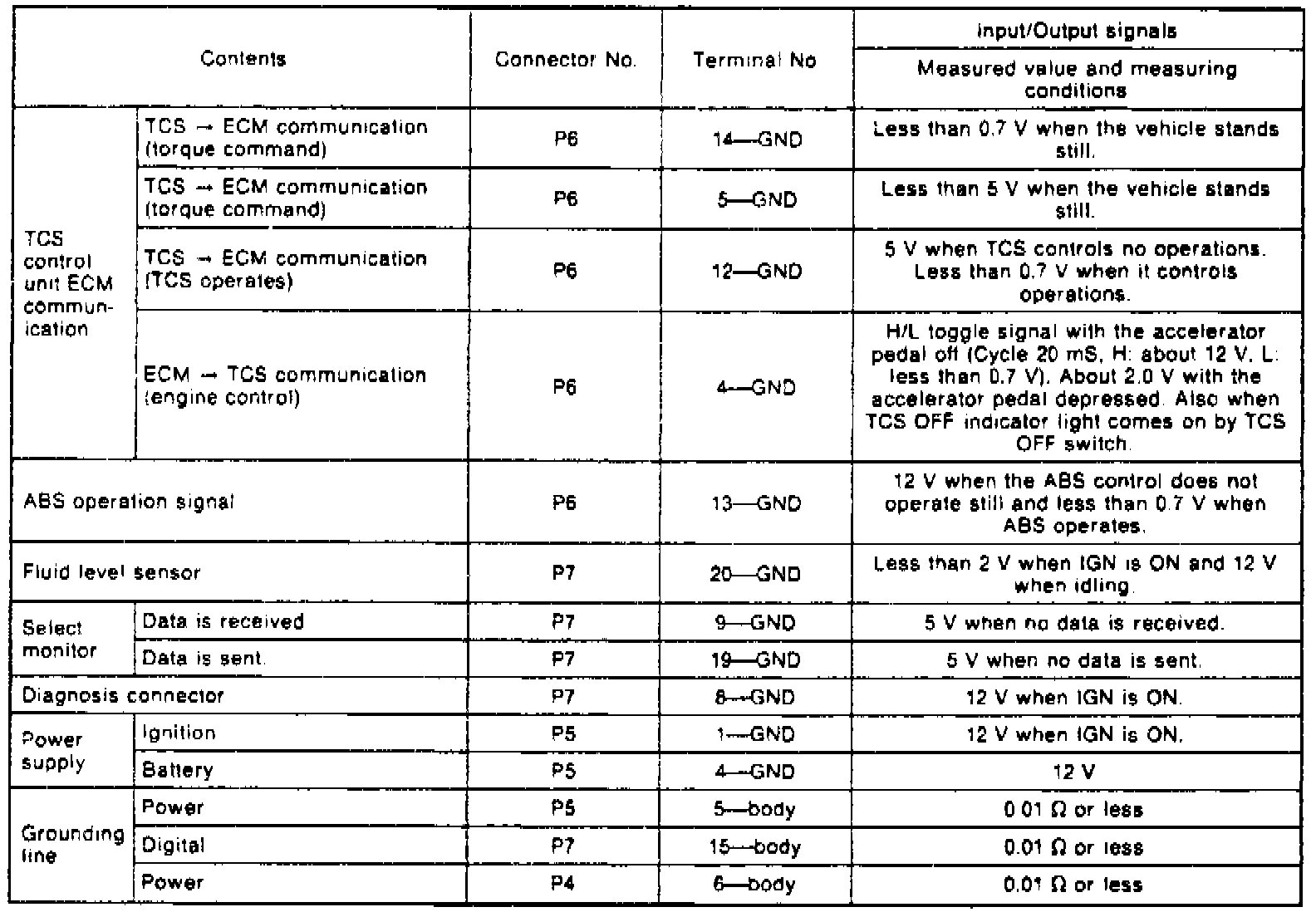 Fig. 11 ABS/TCS Control Module Pin Voltage Specifications (Part 2 Of 2):
