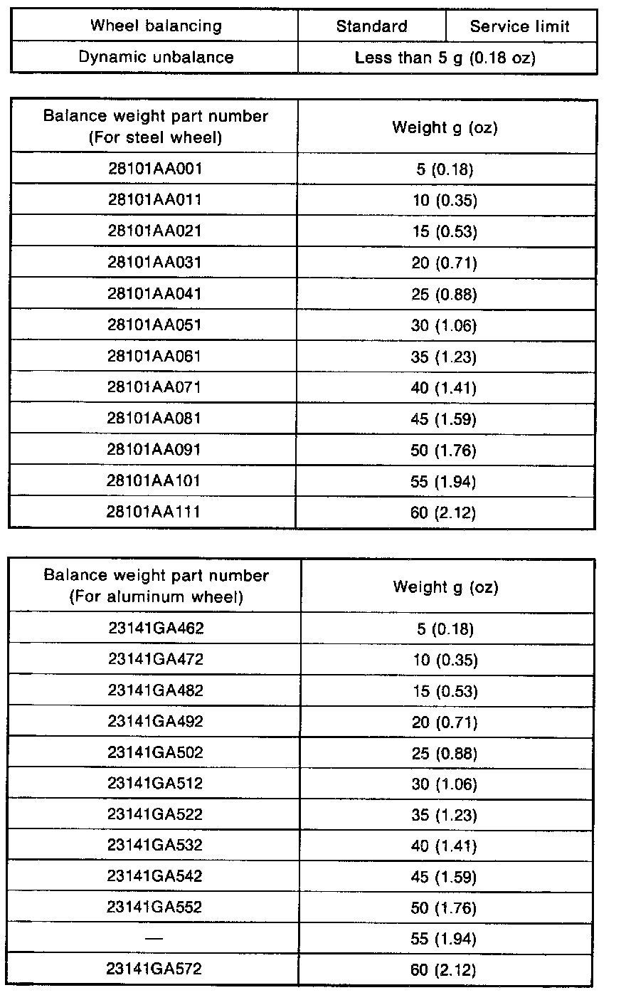 Balance Weights Service Data