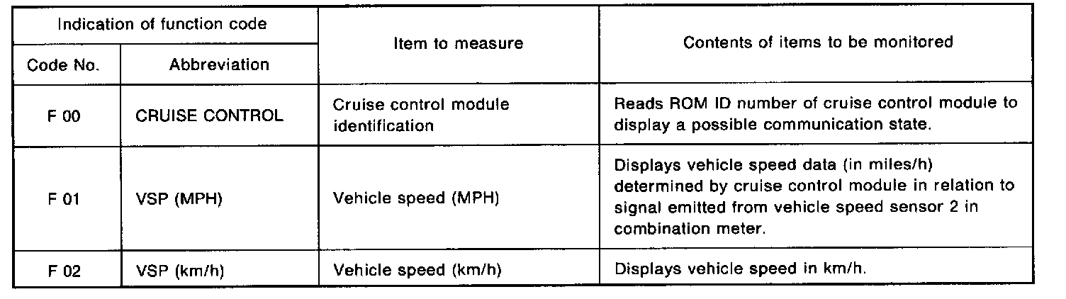 4. If cruise speed is canceled itself (without doing any cancel operations), a trouble code will appear on select monitor display.