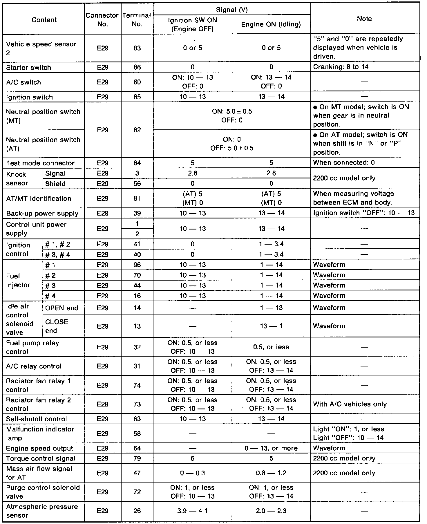 ENGINE CONTROL MODULE (ECM) I/O SIGNAL