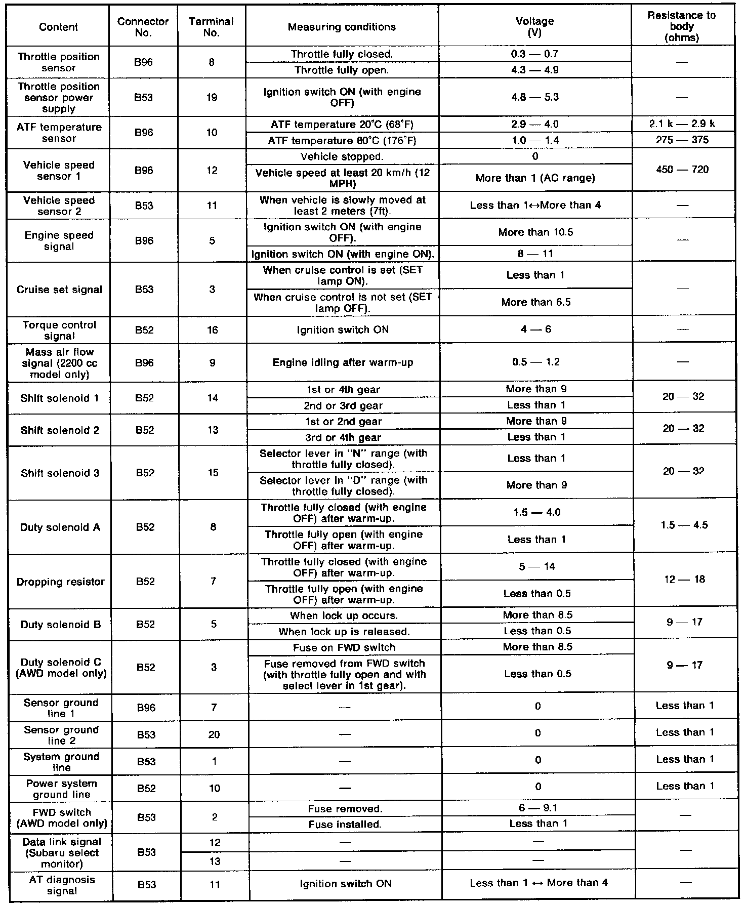TRANSMISSION CONTROL MODULE (TCM) I/O SIGNAL