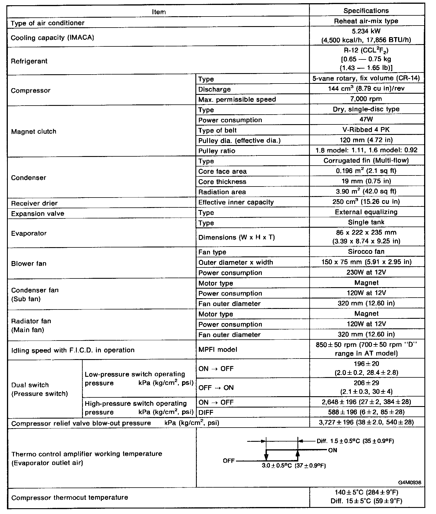 Air Conditioning System (Specifications):