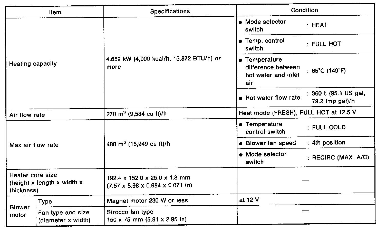 Heater And Ventilation (Specifications):