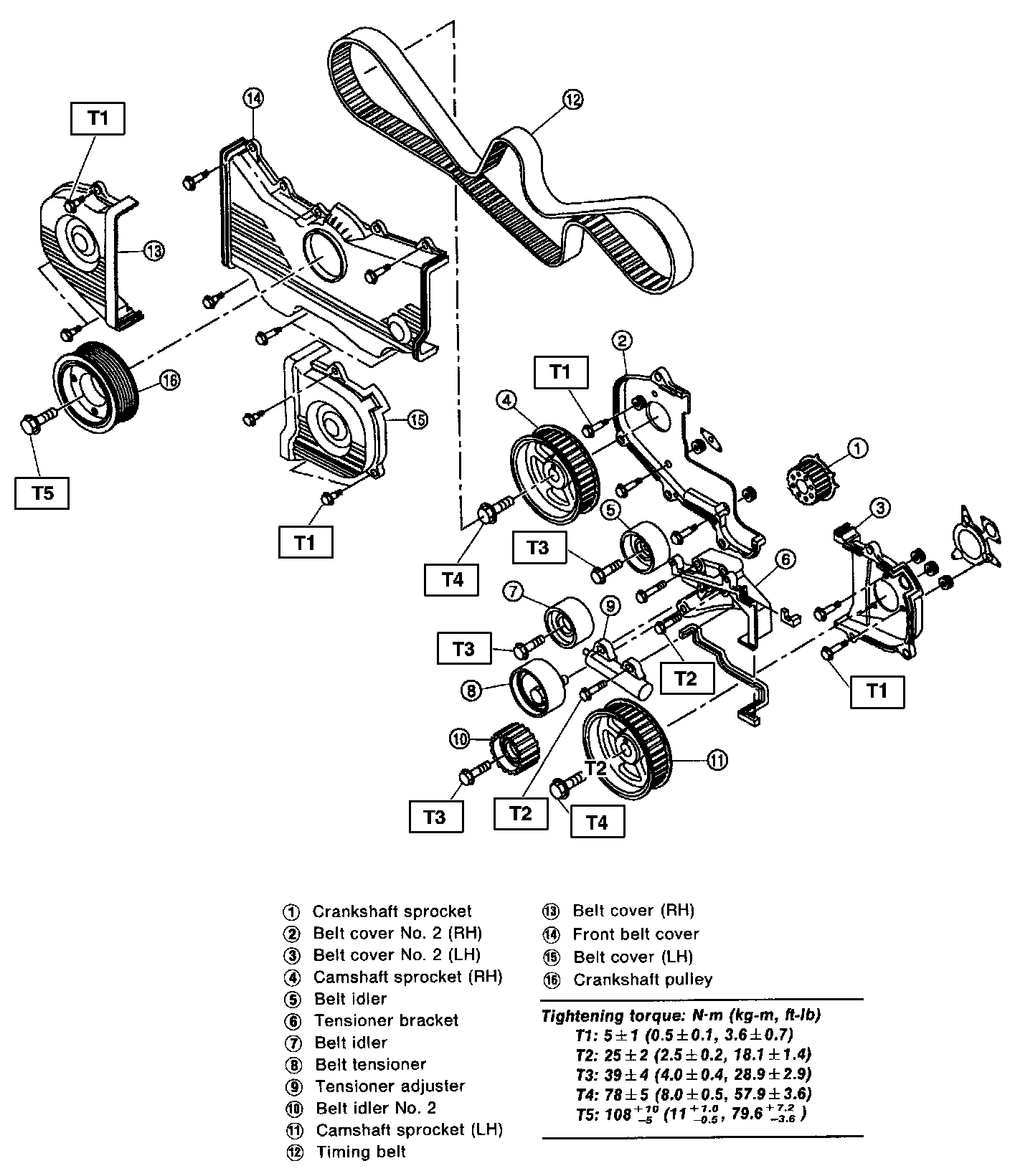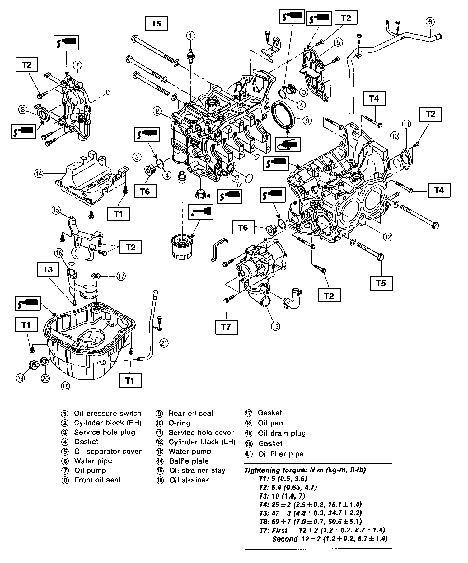 1. Tighten all bolts to 29 N.m (3.0 kg-m, 22 ft-lb) in numerical order.