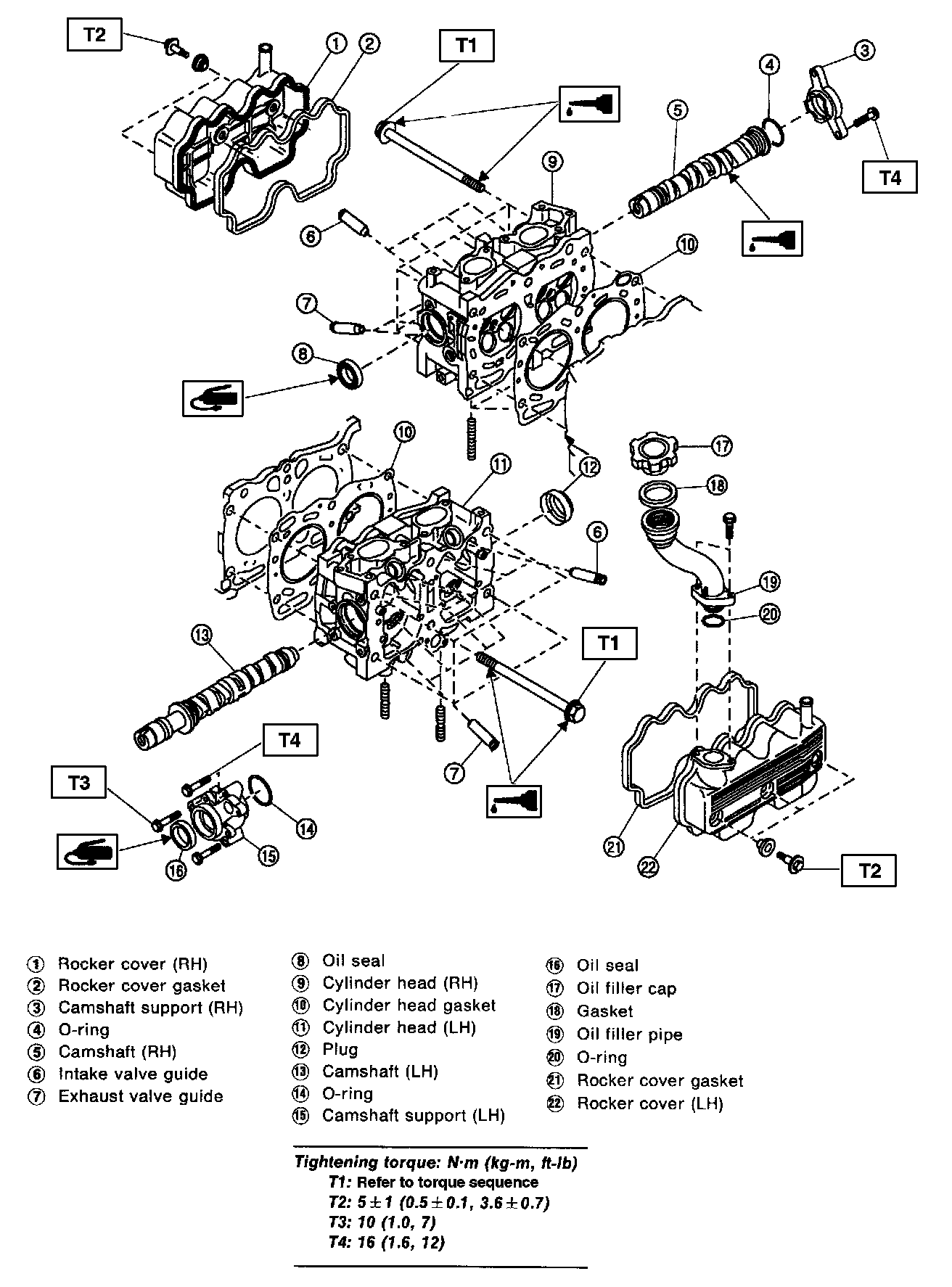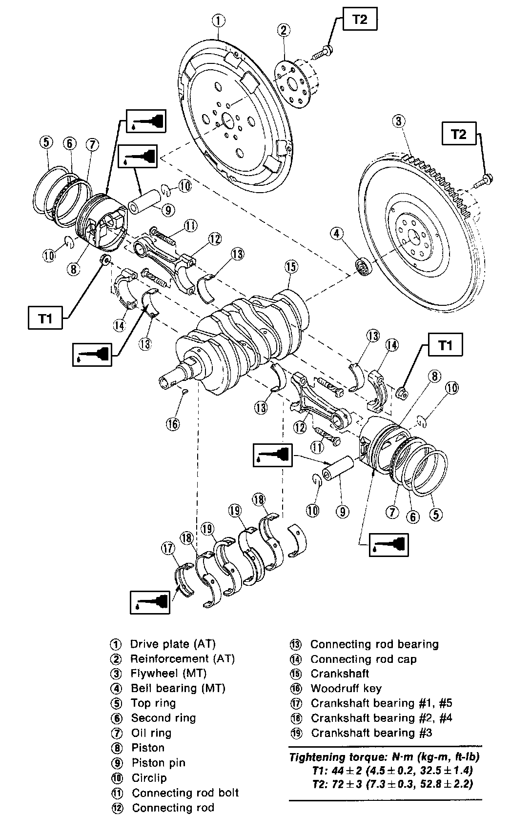 Note: Apply a coat of engine oil to washers and bolt threads.