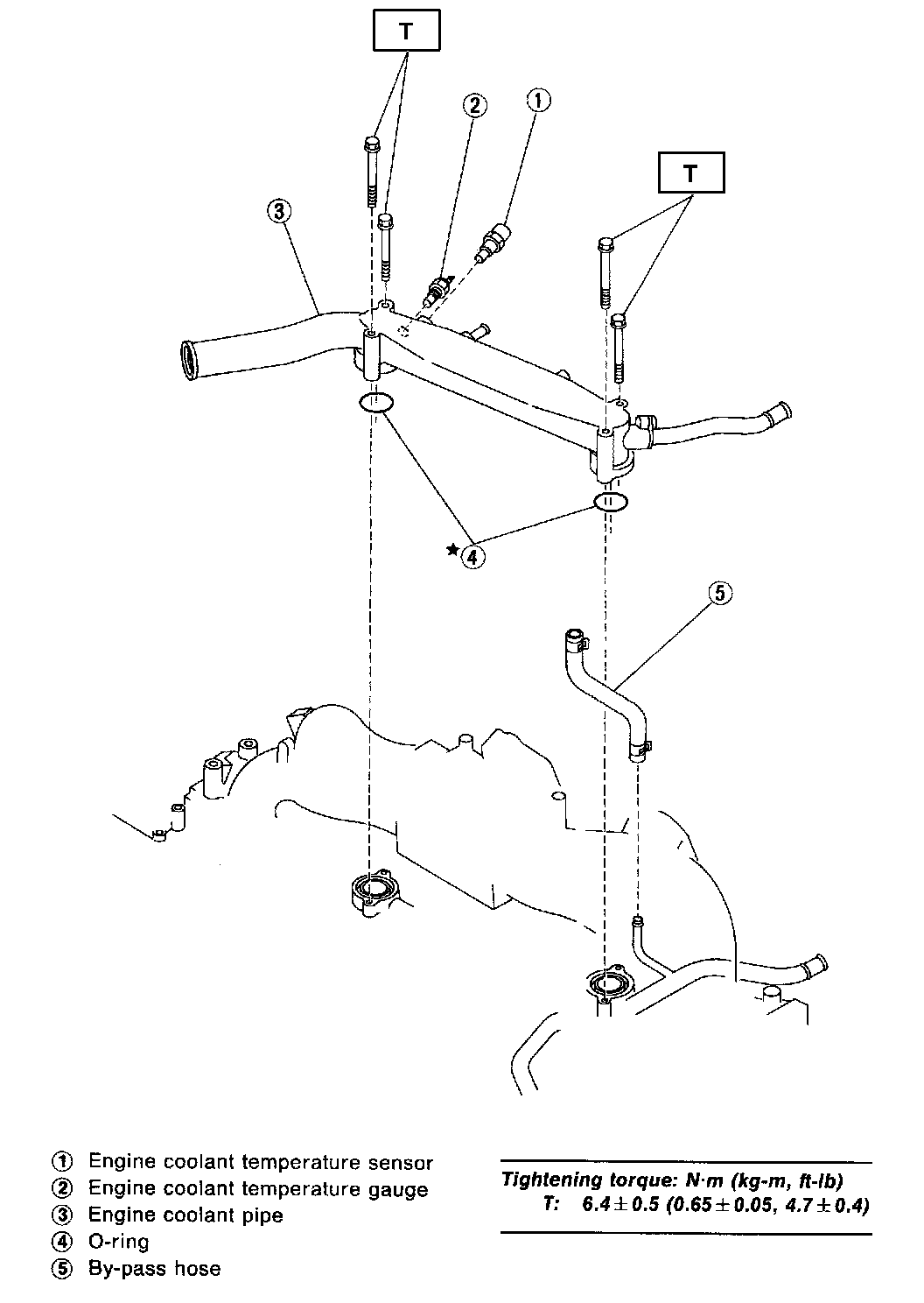 5. Tighten bolts (3), (4), (5) and (6) to 15 N.m (1.5 kg-m, 11 ft-lb).
