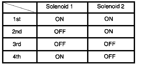 3. Gears are shifted by "ON"-"OFF" operation of both Solenoids as indicated in Table.