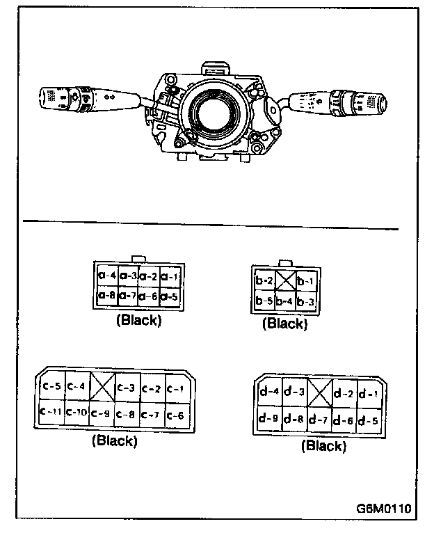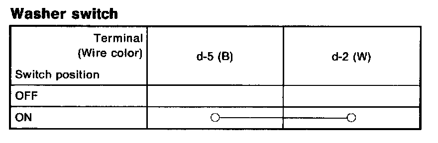 Set wiper switch to each position and check continuity between terminals (indicated in table).