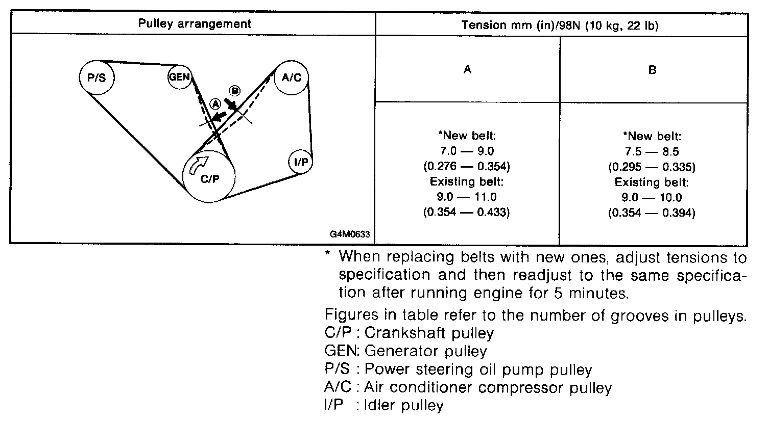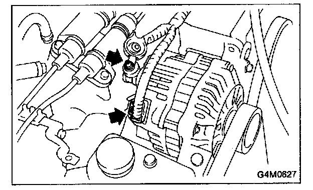 6. Check drive belt tension and adjust it if necessary by changing generator position and/or idler pulley position.