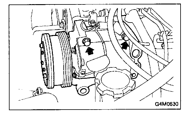 - After completing the compressor installation and testing the system operation, check and adjust the tension of both V-belts again.
