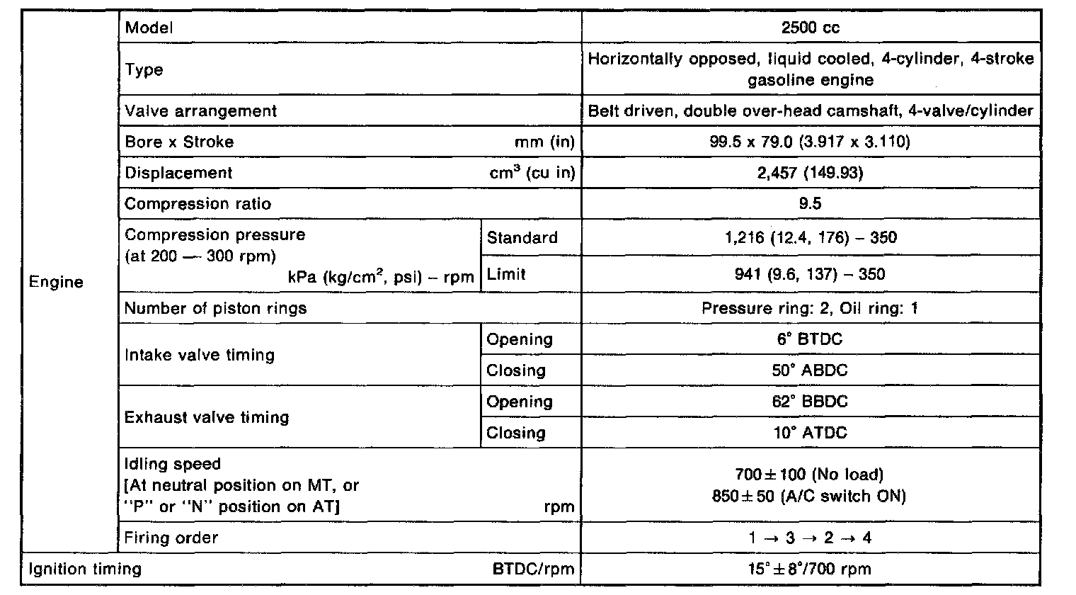 Legacy Sedan 4WD F4-2.5L DOHC