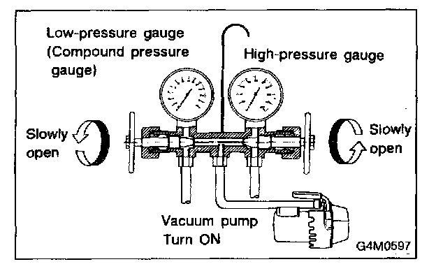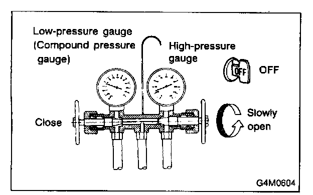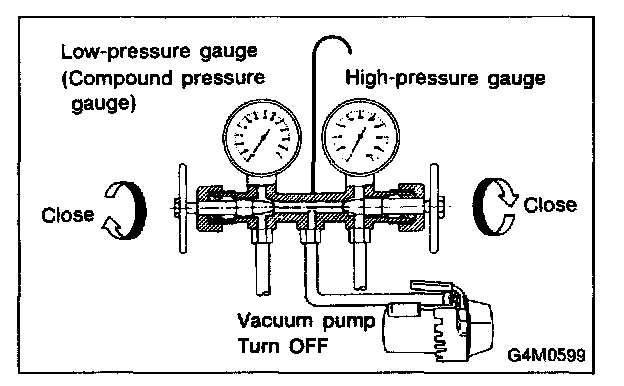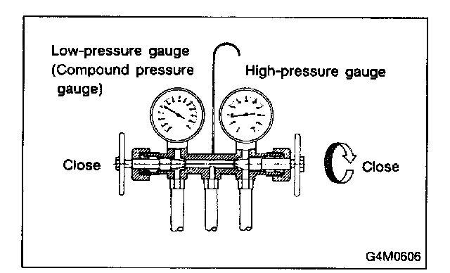 1. Close the high and low-pressure manifold valves.