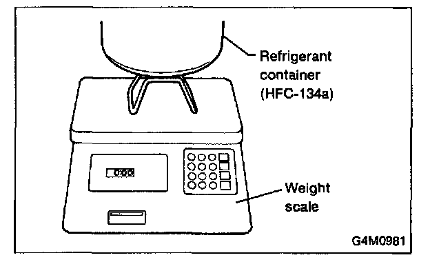 8. If a 13.6 kg (30 lb) container of refrigerant is used a weight scale will be needed. This scale is to determine the amount of refrigerant that is used.