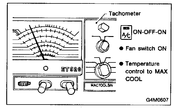 3. With the A/C switch off and the windows rolled down, start the engine and run at idle rpm.
