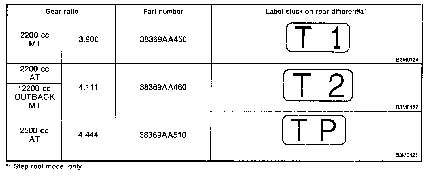 When replacing a rear differential assembly, select the correct one according to the following table.