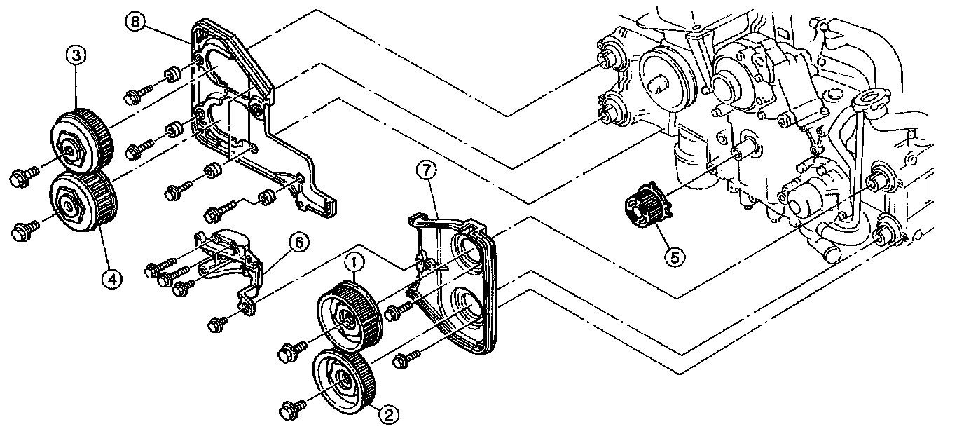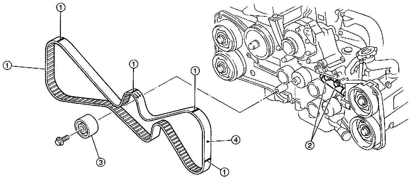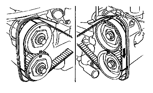 (2) Using white paint put alignment and/or arrow marks on timing belts in relation to the sprockets.