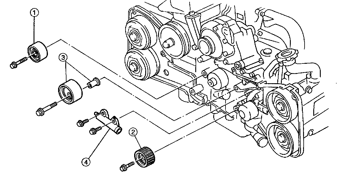 4) Remove belt tension adjuster.