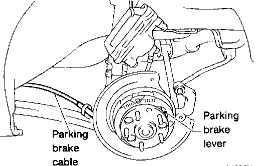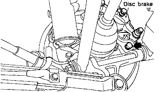 2) Suspend the disc brake assembly so that the hose is not stretched.