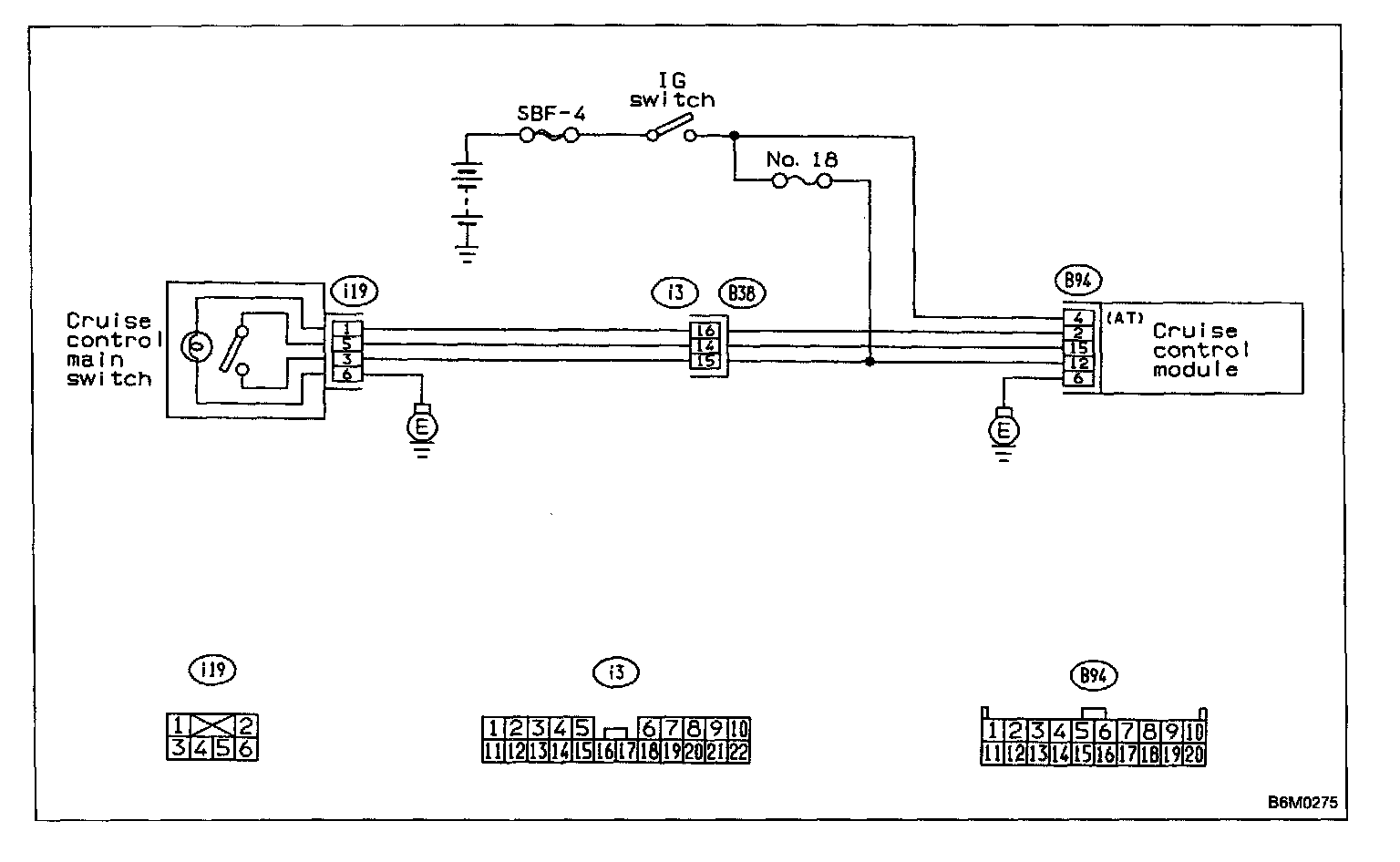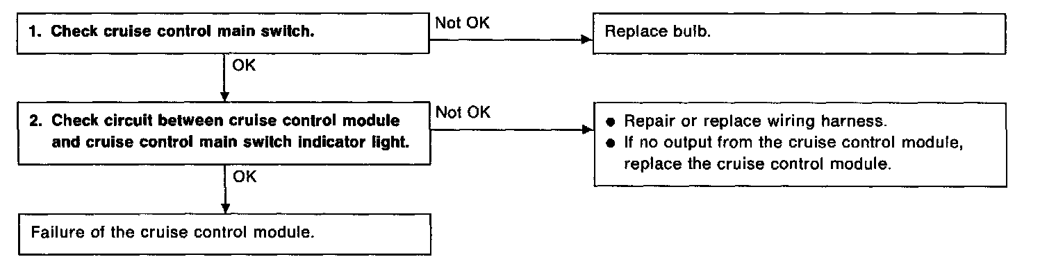 - Bulb failure or open harness of the indicator circuit in the cruise control main switch.