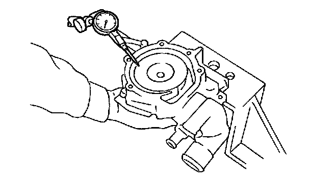 3) Using a dial gauge, measure impeller runout in thrust direction while rotating the pulley.
