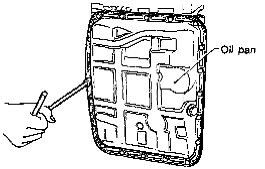 NOTE: Tap the corners of the oil pan when removing.