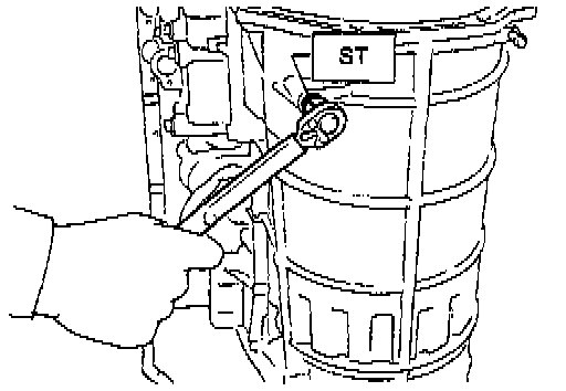 13. Loosen the brake band adjusting screw with ST, and take out the strut.