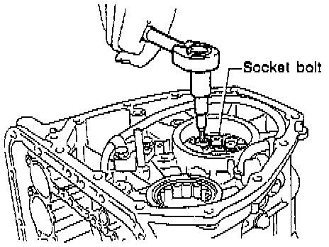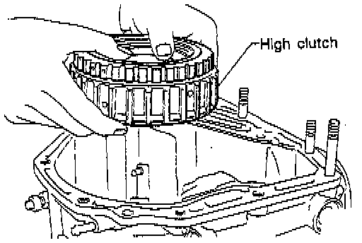 CAUTION: Thrust needle bearing and bearing race are removed together with high clutch. Be careful not to lose them.