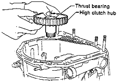 16. Take out the high clutch hub and the thrust bearing.