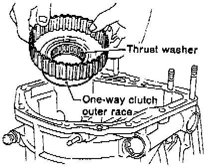 21. Take out the one-way clutch outer race and the thrust washer.