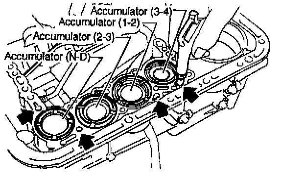 26. Apply compressed air from the operating pressure side, and take out accumulator (3-4), accumulator (1-2), accumulator (2-3), accumulator and spring (N-D).