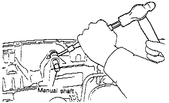 29. Remove the parking rod together with the manual lever. Then remove the manual shaft by pulling off the straight pin.