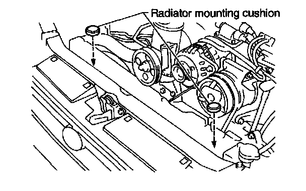 2) Install radiator while fitting radiator pins to cushions.