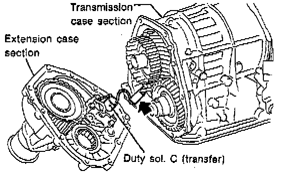 b. While pulling the extension slightly, disconnect the connector for the duty solenoid C (transfer).